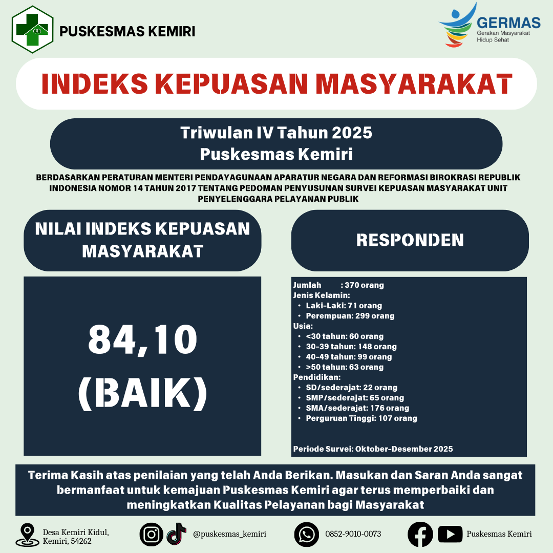 - RILIS DATA: Indeks Kepuasan Masyarakat Puskesmas Kemiri Triwulan IV 2025